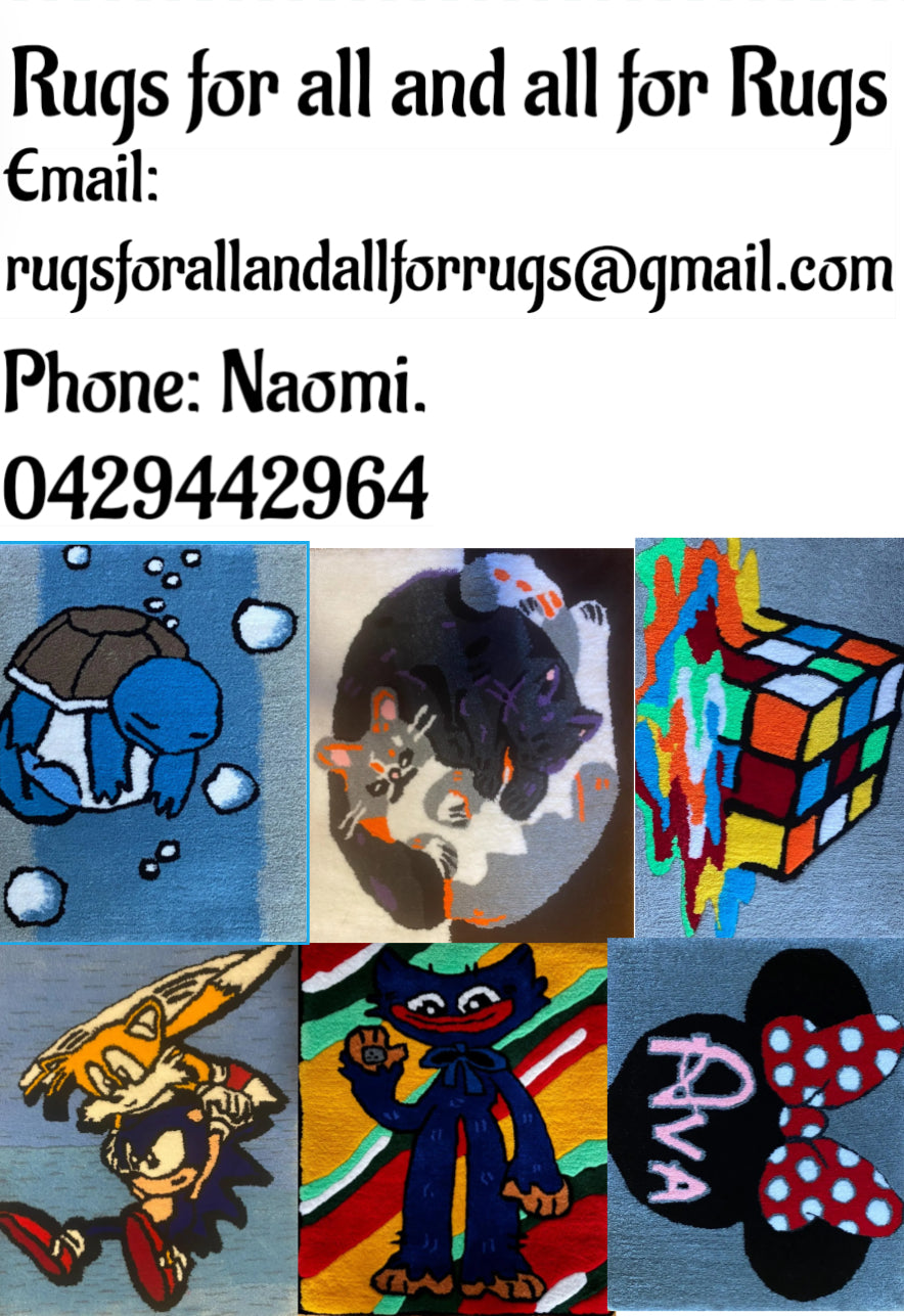We take custom order designs for rugs, all of the photos up now are previously sold/personal use designs but if you find any that you find interesting we can redesign it or remake the previous designs.